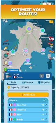 Explore a detailed 3D world with 100+ countries and 250+ airports to unlock. Connect regional, national, and international airports to create a high-performing network. Optimize each route considering aircraft capacity, airport size, waiting time, and fill rate. The more you develop your infrastructure, the greater your expansion potential.