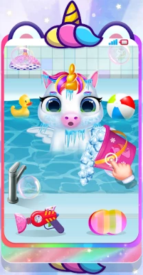 Bathe this little unicorn pony and have a super fun time with bathing tools and toys!