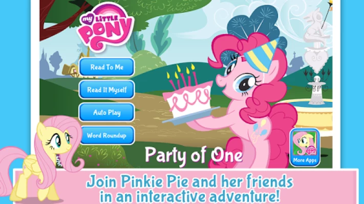 Bold graphics, bright colors and lots of animations make Party of One an enjoyable and engaging way to be entertained and practice reading skills. Perfect for My Little Pony fans and beginning readers.