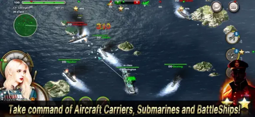 More than 500+ warships! Control legendary naval warships of USA, UK, Japan, Germany, Soviet Union, France and Italy. Pick your favorite among the coolest destroyers, cruisers, battleships, aircraft carriers and submarines! Command your warships and aircrafts to attack enemy from sky, sea and underwater.