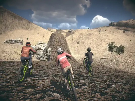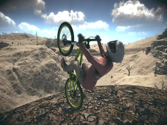 Offroad bmx bicycle stunt riding are build upon hills and mountain bike race is held in water surfing to perform extreme stunts on impossible tracks 3d of Riders Republic