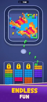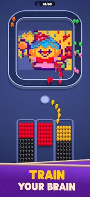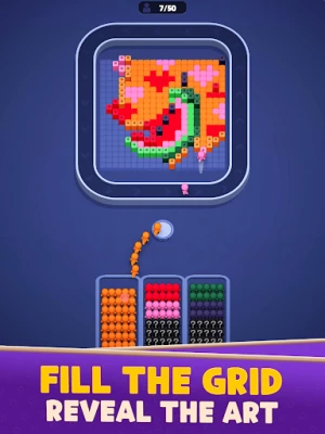 A looping conveyor belt moves your characters around a pixel art canvas, where each person searches for their matching tile. Tap the people in the lower columns to send them onto the belt and watch them jump onto the correct spot to paint it. Only a small portion of the canvas is paintable at the start, but every painted tile unlocks its adjacent ones. Time your taps, manage your people, and open new paintable zones one move at a time. Discover the uniquely calming yet strategic experience of building an image pixel by pixel with Pixel People.
