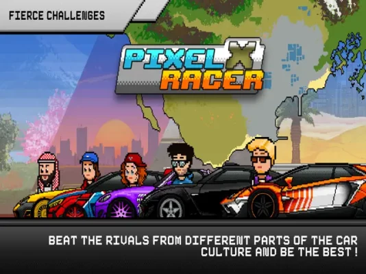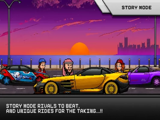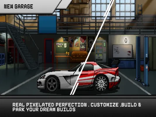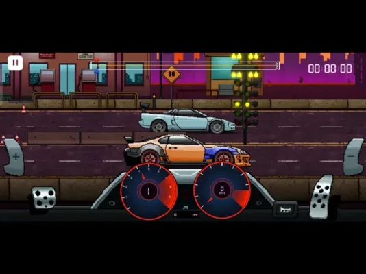 One of the most challenging drag racing pixel retro games with countless features to build, tune, and race with your favorite cars!