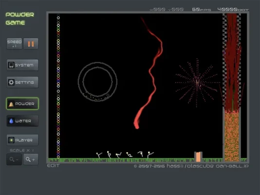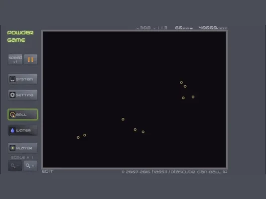 Imagine the cool phenomenon when the wind blows the falling leaves. This game physics simulates the phenomenon with powder (dots)!