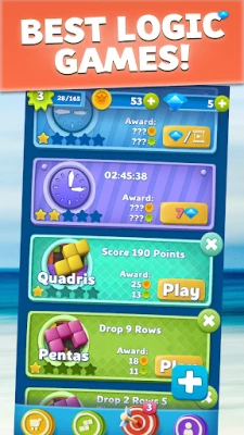 ● Tasks. Complete tasks to collect gold and XP. Achieve new XP levels and make new puzzles and features available.