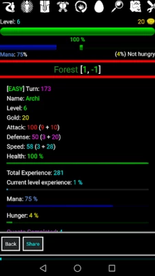 - main stats of attack, defense and speed which you can assign to your character in the beginning of the game and improve throughout your trip