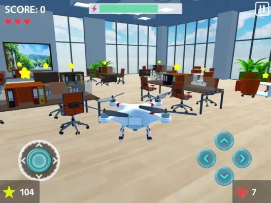 Fly remote controlled drones and collect stars at three different places: Office, Supermarket and Warehouse.