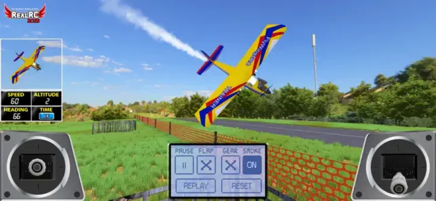 We included the virtual RC Controller on the screen fully configurable and a physics algorithm very close to what you can do with your real RC plane.