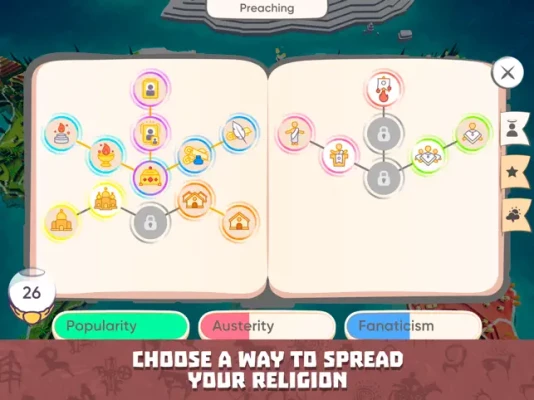 Acquire various abilities, from different methods of spreading your religion to divine miracles. Adapt to different countries, events, and the challenges of the times.