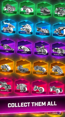 - Browse through 24 incredible bikes and cars, and upgrade each of them to 3 levels of rarity with exclusive designs.