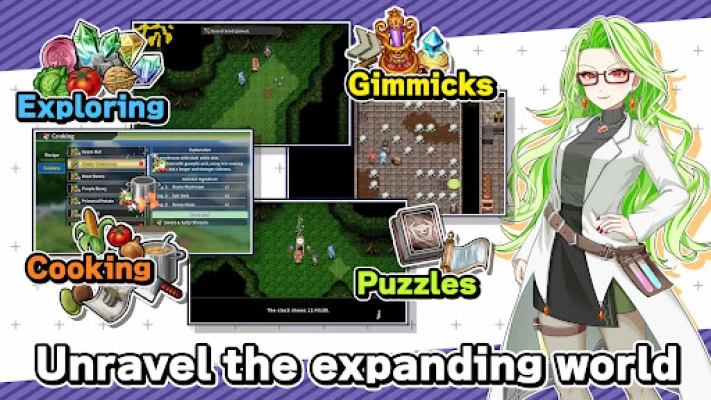 Explore a vast expanding world depicted in beautiful pixels, from puzzle dungeons to detour dungeons! Collect ingredients while walking around to cook meals, take on special quests limited to the child state, and fully enjoy every corner of the world of Alter Age!