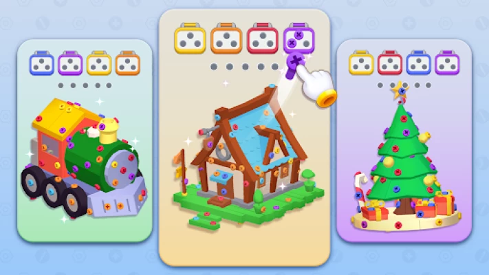 ☑️ Unscrew parts one by one and place them in the correct slots in this screw puzzle adventure.