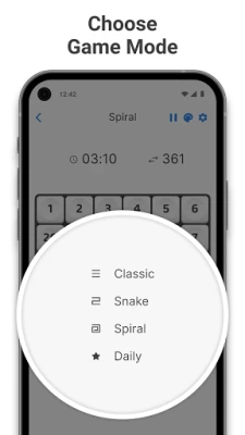 • 3 game types for you: "Classic", "Snake" and "Spiral"