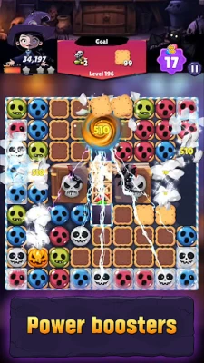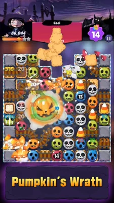 Join the Halloween witch and start your spooky match-3 adventure today!