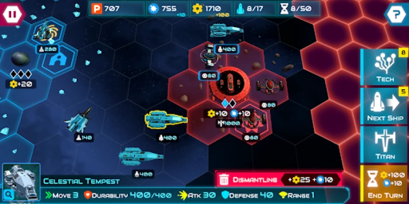 - Place your allied fleet on an enemy/neutral planet tile to start the conquest