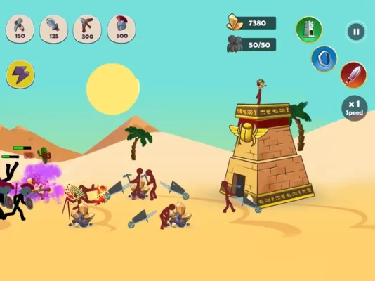 Get gold to recruit more fighters to your army. At your disposal: miner, stickman warrior, archer, Spartan, giant, and even a catapult. Upgrade your army by improving the skills and weapons of the stickmen. Strengthen your fortress. Get ready for the legendary battle of the stickmen. The outcome of the battle depends only on you.