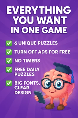 The Brain Game is 7 games in 1: Match 3, Hidden Object, Mahjong, Word Search, Jigsort, Color Filler, and a Pairs card game. These games can help keep your brain sharp: