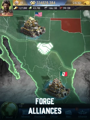 Develop strategies, employ military tactics, join alliances, upgrade energy sources, and deploy chemical weapons to defend your base effectively. Strategize to conquer bases with various weapons, including missiles, and command your army to destroy enemy nations and expand your territory.