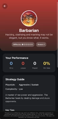 Track your wins, losses, and win rate automatically. View character-specific performance to see which heroes you dominate with. Browse your recent game history with detailed match information. Export your data for backup or manually log games played offline.