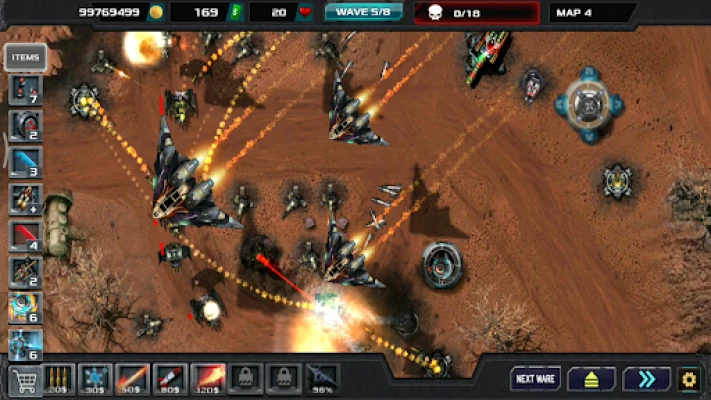 Tower Defense Legend War SciFi: Future War builds upon the arsenal that secured victory in Tower Defense 2: Defense Legend 2. Some notable weapons include: