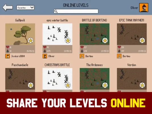 - Creative/sandbox mode - Create and design your own levels. Recreate historical WW1 battle scenes and select from a variety of maps and different weather. You can also try spawning 1.000 tanks or flamethrowers and defeat the enemy on INSANE mode for a total war.