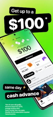 Membership is required to request cash advances and use the Budget tab. Approval is not guaranteed. Premium members may earn up to 10% more in the Earn tab. Membership costs $4.99/month and renews automatically until canceled in-app. Uninstalling does not cancel membership. Instant transfer fees ($1.99–$5.99) are not included. Cash advance amounts range from $10–$100, with an average of $40 as of Aug 2025.