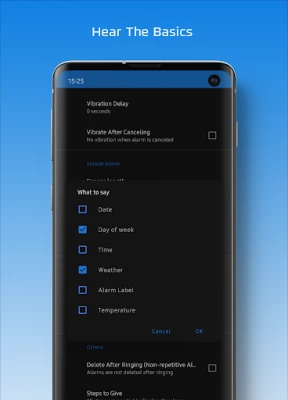 🗣 Talking alarm – speaks the time, weather, and more.