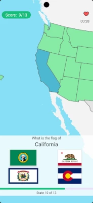 The game offers various quiz modes: • States and their locations on the map • State capitals • Largest cities • State flags