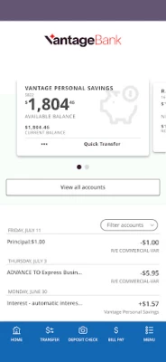 Vantage Bank Business brings you secure access to your business accounts. Send and receive money, pay bills, deposit checks, and so much more.