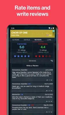 Community Reviews & Voting – See what others think about weapons and armor. Upvote the most helpful reviews and contribute to the Destiny 2 community.