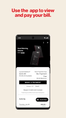 The Verizon Visa Card App requires a compatible device and an active Verizon Visa Card account.