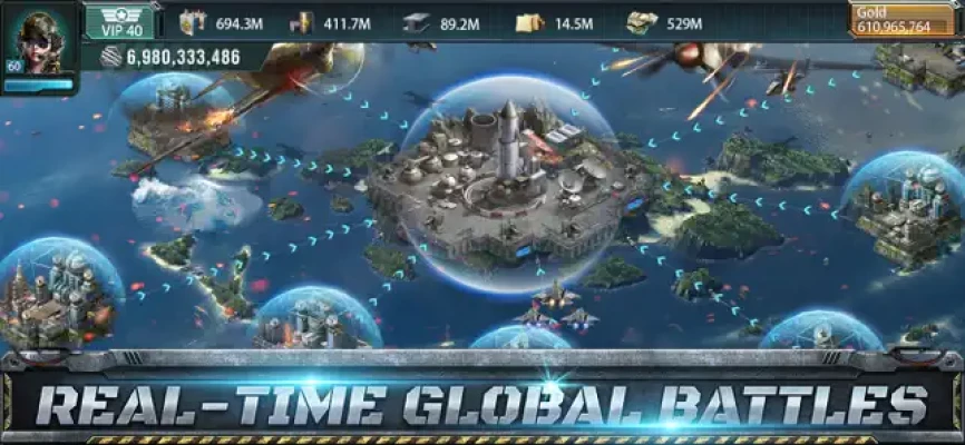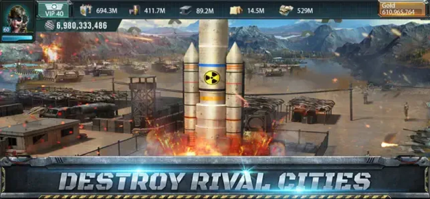 - Resources management (electricity, oil, iron, food, cash, and gold) to build your buildings, train your troops, craft war machines and upgrade them.
