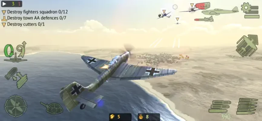 Gather experience and military ranks, unlock medals, climb on the leaderboards to become ultimate pilot.