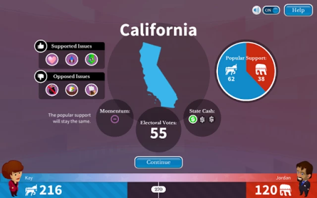 Running for the presidency isn't easy! In Win the White House, manage your very own presidential campaign by debating your opponents, strategically raising funds, polling voters, launching media campaigns, and making personal appearances. Keep a close eye on the map as you battle for electoral votes.