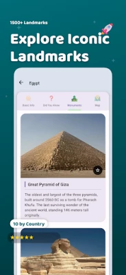 🏛️ Journey Through Iconic Landmarks: Marvel at breathtaking visuals and fascinating stories behind up to 10 world-famous monuments and hidden gems for each country. See the wonders of the world brought to life, enriching your global perspective.