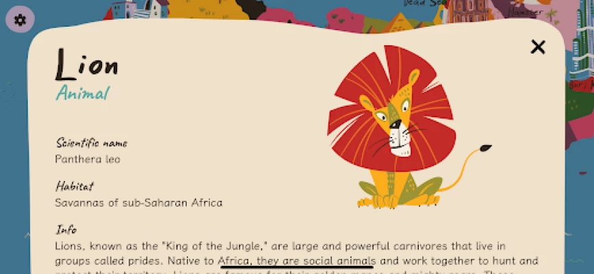 * Hand-Illustrated World Map – Click on landmarks, animals, and other points of interest to learn more.