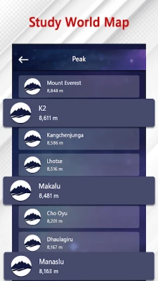 The quiz game gives you world map challenge questions. Study world map and clear the quiz games.