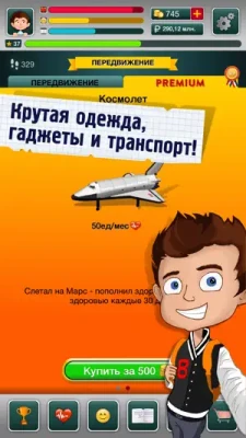 Крошка сын к отцу пришел..А вот что хорошо и что плохо – теперь решаете Вы! Парень начинает с нуля и ему необходима Ваша помощь! Станет ли он успешным, богатым, популярным? Или пойдет по пути забитого незаметного мальчика? А может и вовсе станет бомжарой?Его жизнь в Ваших руках! Можешь заниматься разными крутыми бизнесами – от продажи мела до открытия пивоварни, можешь гулять с любыми девчонками, в том числе и с Мисс Мира! Офигенные гаджеты не дадут пропасть – увеличивают характеристики, повышают статус, помогают в игре. Куча интересного транспорта, одежды, подработок - всего и не расскажешь!Скачивайте игру и убедитесь сами, будет интересно!:)