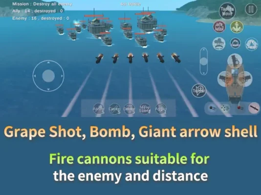 Choose the appropriate shell according to the distance and situation, such as Grape shot, Bomb shot, Giant arrow shot, and Arrows.