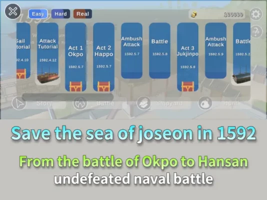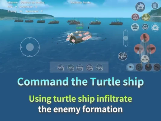 Use Panok ship and Turtle ship to advance strategically, and defeat the enemy.