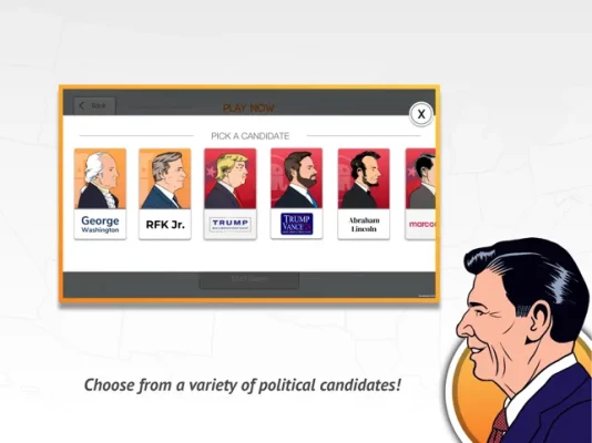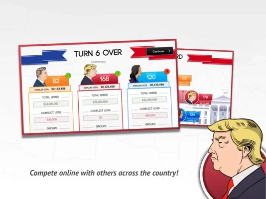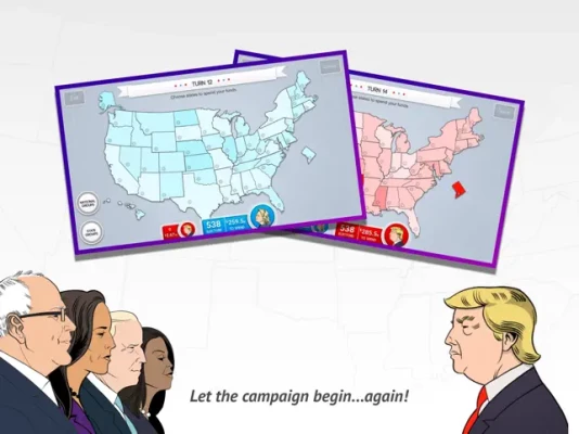 So battle it out on the road to the White House by running against political opponents in key states, winning over interest groups and accumulating Electoral Votes to become President!