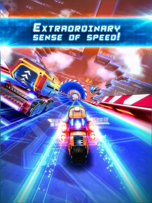 Mount your cyberbike and be ready for a rush! Dominate the adrenaline fueled high-speed street races through futuristic landscapes and knock out those pesky rival riders.