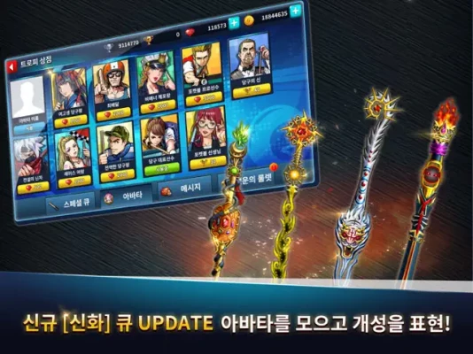 - 다양한 큐와 캐릭터! 자신만의 실력을 만들어갈 수 있는 게임!