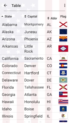 * Table of all U.S. states.