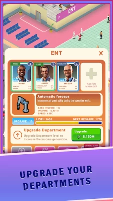 Use the upgraded idle managers system to build the ultimate idle hospital tycoon! Assign managers to suit your needs, adjust your options, and become a top idle tycoon by growing your patient base, reducing wait times, and maximizing each department’s efficiency in your idle journey!