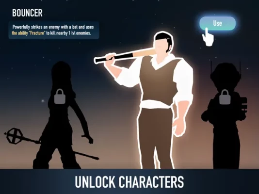 You can play as a viking, a hitman or even a samurai from the world of cyberpunk. And that’s not all of the available characters! Earn points for each battle and unlock more of them. Each character has a unique appearance and a weapon. Take a gun, a bat or a sword to attack your enemies and make your fights unforgettable!