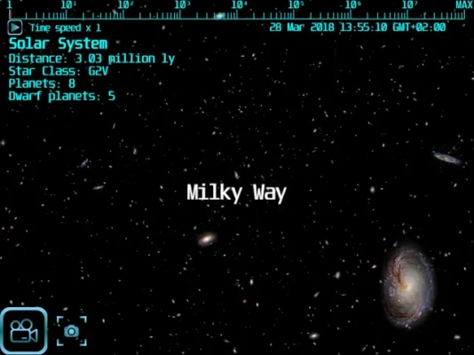 - Experience the full scale of the Universe: you can zoom out from a few meters to billions of light years, until you see the entire observable universe in your screen.