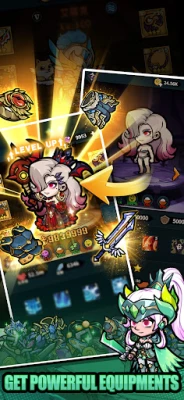 Craft epic and legendary weapons, accessories, and other gears in shops, boost them by various combinations with Gear Enhance Stones dropped in free idle battles, and equip them on your beloved heroes to fight far and wide!