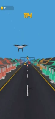As you fly through the city, you will encounter a variety of challenges, such as buildings, cars, and signs that are trying to take you down. The game is easy to learn but challenging to master. You control the drone by swiping left, right, up, and down to avoid obstacles and collect gems. The longer you survive, the higher your score!