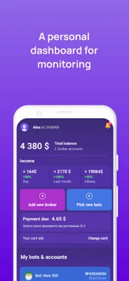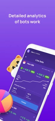 Track bot progress in real time. For each one you can check its active and closed deals and total profit.